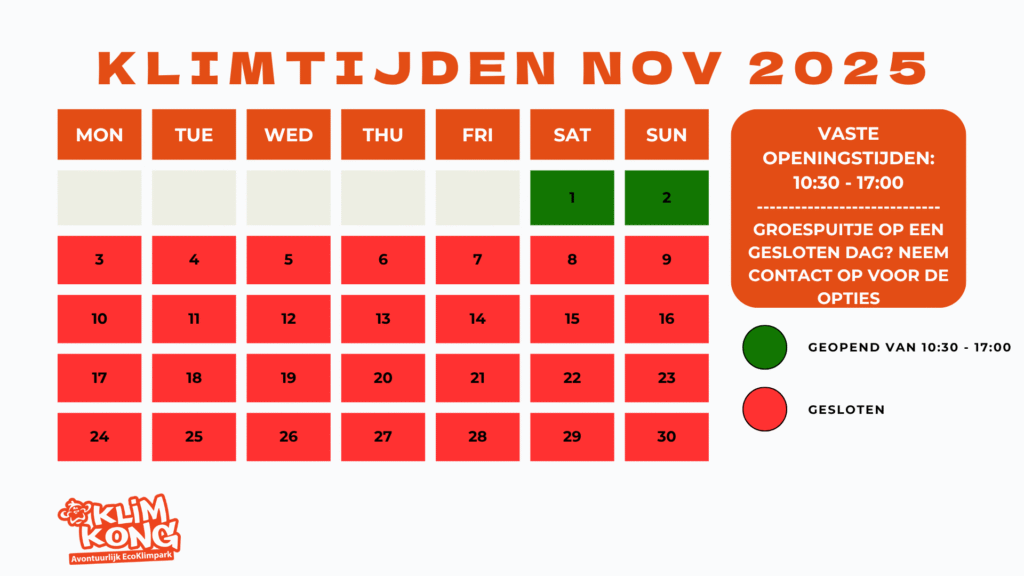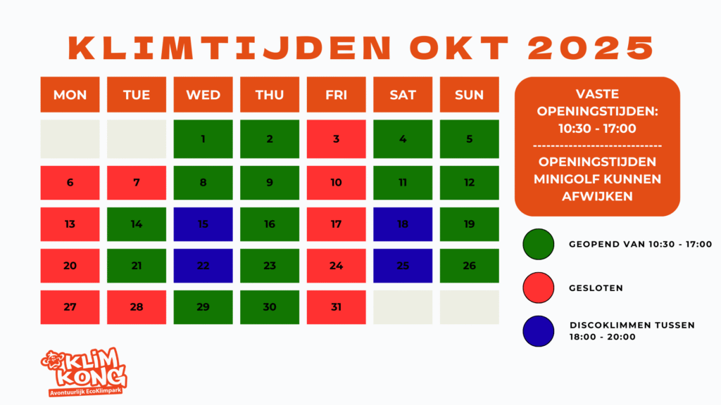 De actuele openingstijden van het Klimmen zien er als volgt uit: