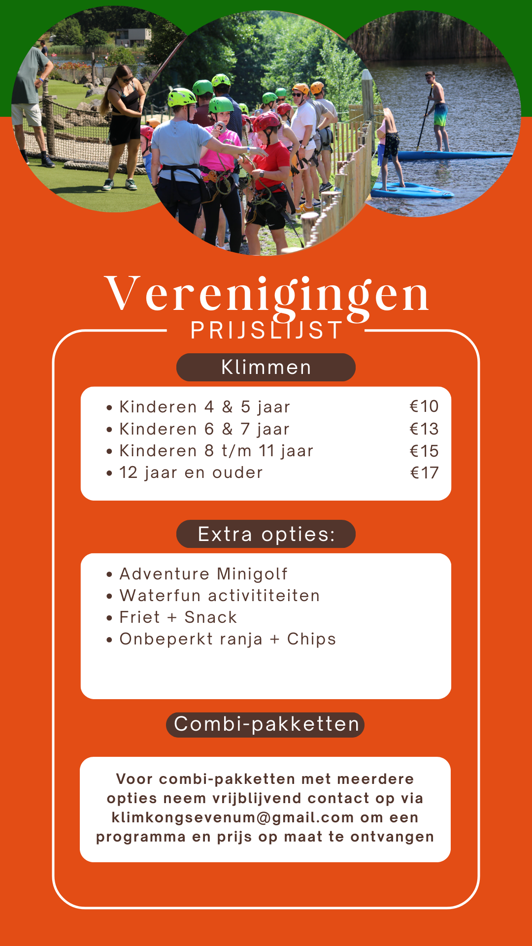 Een keer wat anders dan voetbal, hockey, tennis, korfbal of basketbal? Klim Kong Sevenum biedt de leukste, sportieve uitjes aan. Ideaal voor de meest sportieve teams. Er zijn verschillende mogelijkheden om een onvergetelijke dag bij de kids achter te laten. Ideaal om elkaar beter te leren kennen, plezier te hebben met je teamgenoten en een keer wat anders te doen. Lekker in de buitenlucht bezig zijn, met een actieve, sportieve activiteit is de ideale combinatie voor een geslaagd uitje.